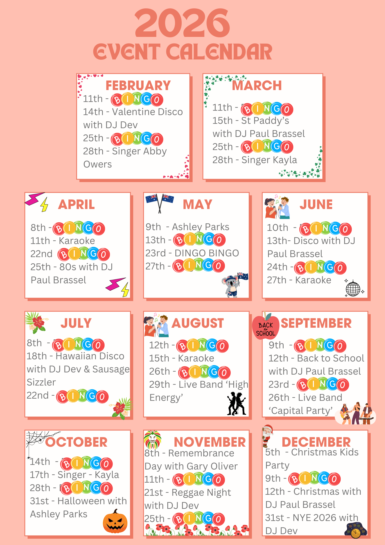 Bingo in the Bar every other Wednesday from 7pm, Eyes down 8pm. CASH prizes